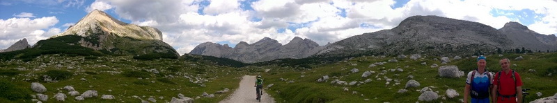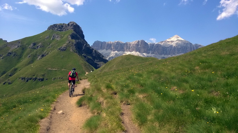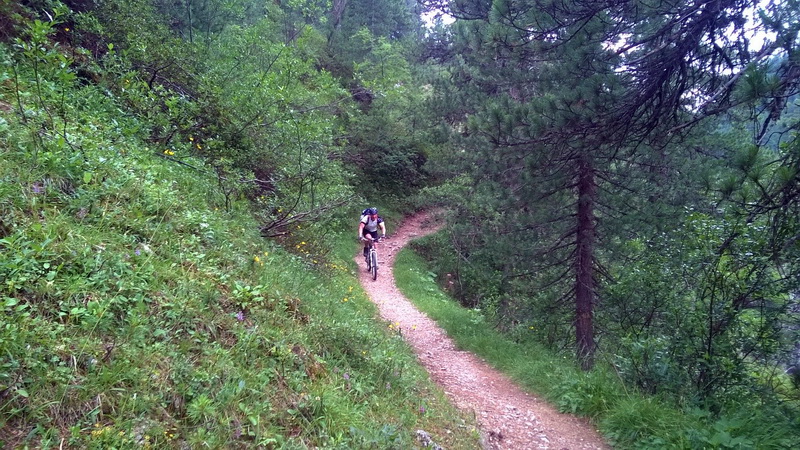 und Marmolada nutzen wir die Freeride-Strecke für die ersten 350 Hm hinunter. Weiter geht es auf einem perfekten Panoramatrail