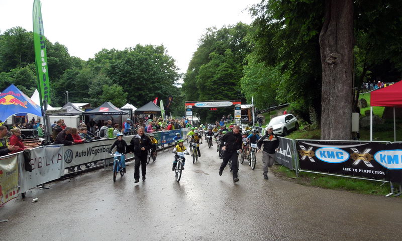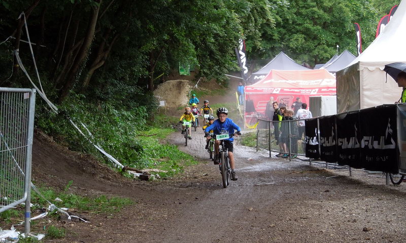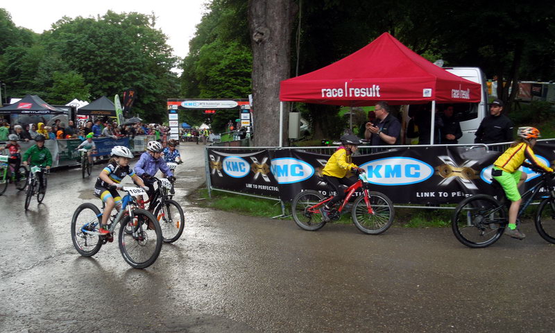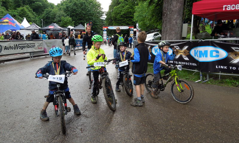 bei den U15- und U13-Rennen hier auch einige Stürze - aber beim MTB-Rennen steigt man wieder aufs Rad und fährt