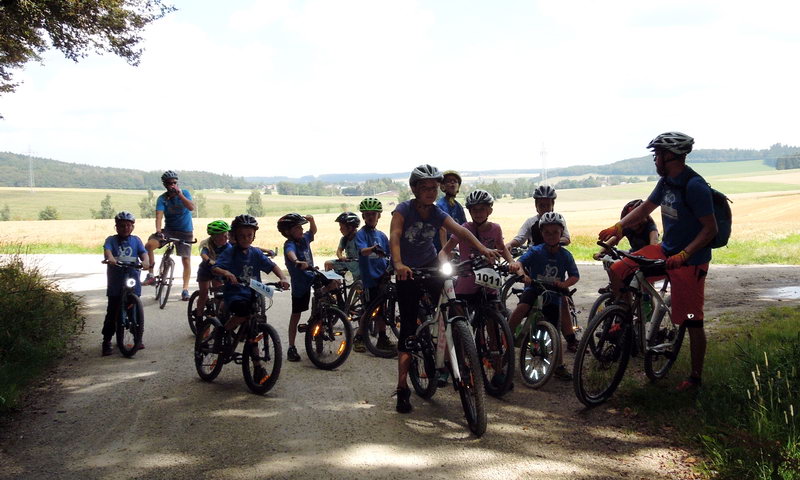 Bei der MTB-Tour zur Falkenhöhle am 16.08.2016 waren 14 Kinder/Jugendliche dabei. Am Bärenberg vorbei ging es über das Kühholz