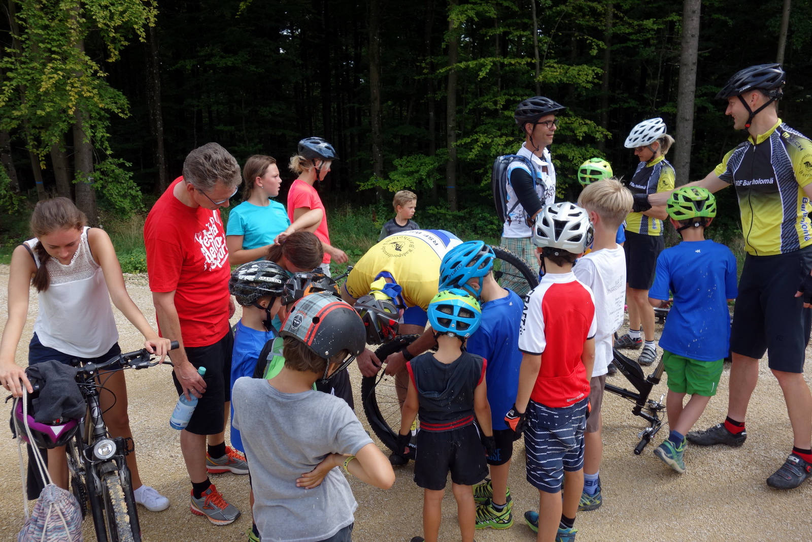 Mit verschiedenen Begleitfahrzeugen wurden die Fahrräder und Radler wieder hinauf nach Bartholomä transportiert, wo am Feuerwehr-Gerätehaus