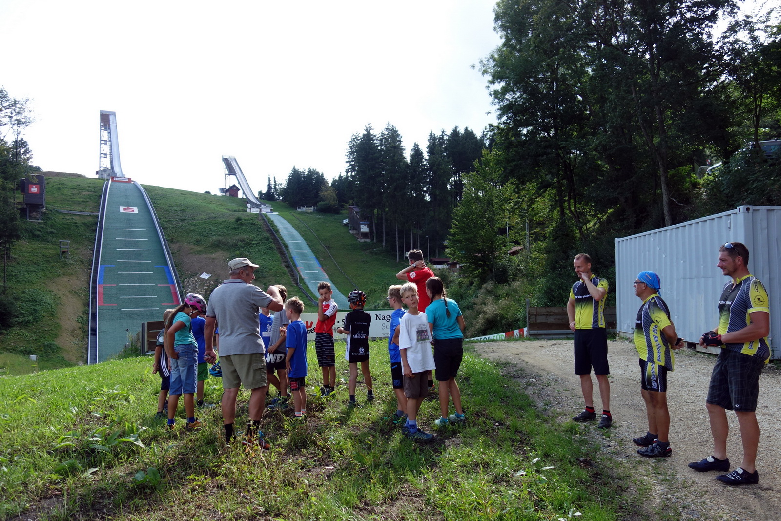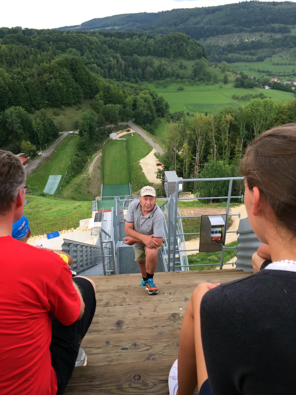Nach dem Auffüllen der Getränkespeicher erklärte Walter Ziller die Anlage, wobei auch der Auslauf und der Schanzenturm der neuen