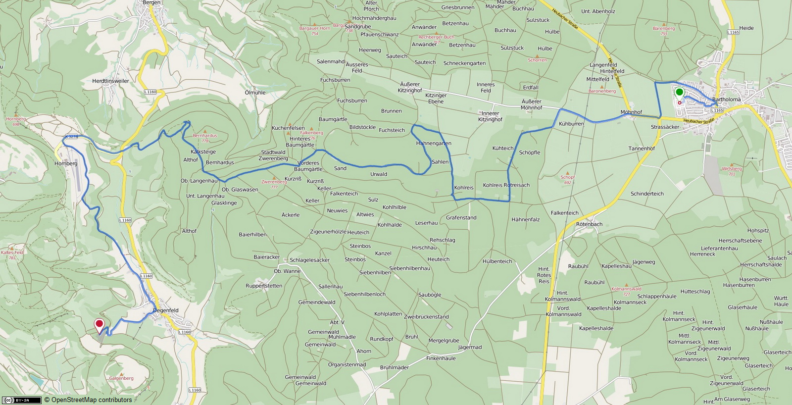 nach Degenfeld und die letzten 50 Höhenmeter wieder hinauf zum Ziel an der Skisprungschanze, wo dann 20 Kilometer und 330 Höhenmeter