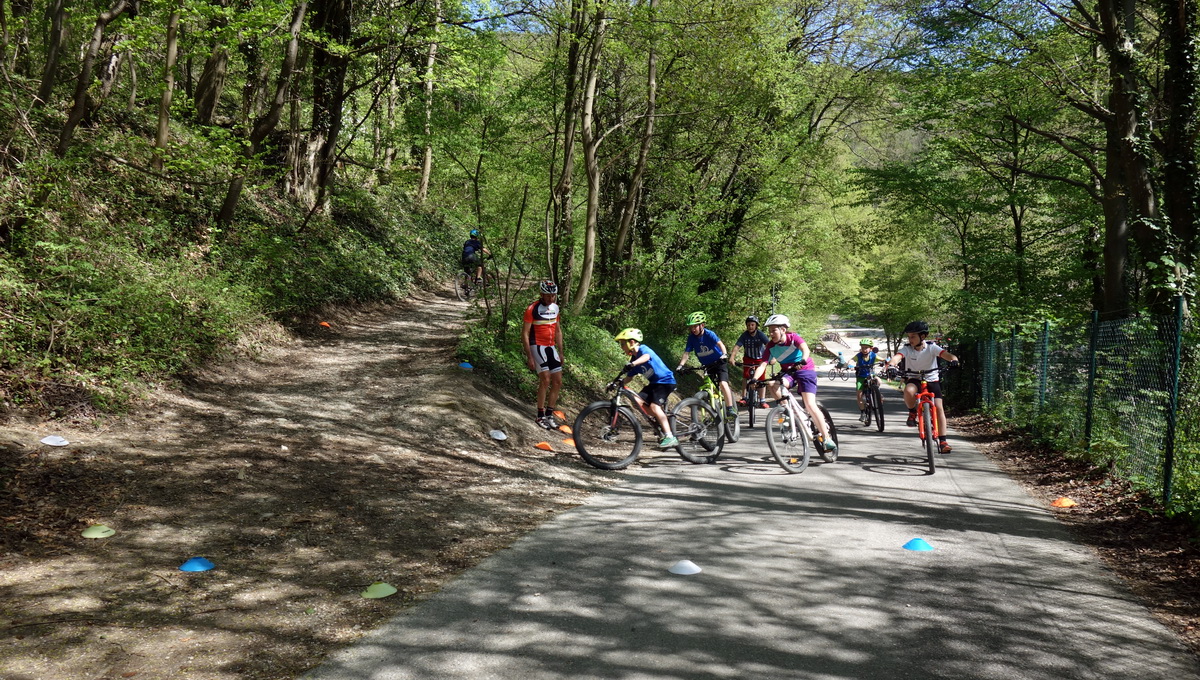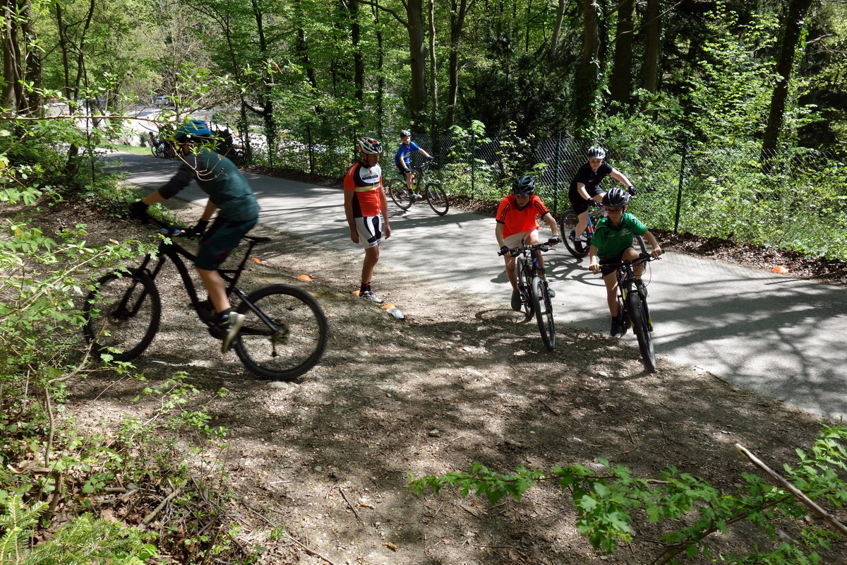 21 Kinder und Jugendliche trafen sich mit den Betreuern um 14.30 Uhr in der Heubacher Stellung. Nach dem Warmfahren auf dem Pump-Track wurde