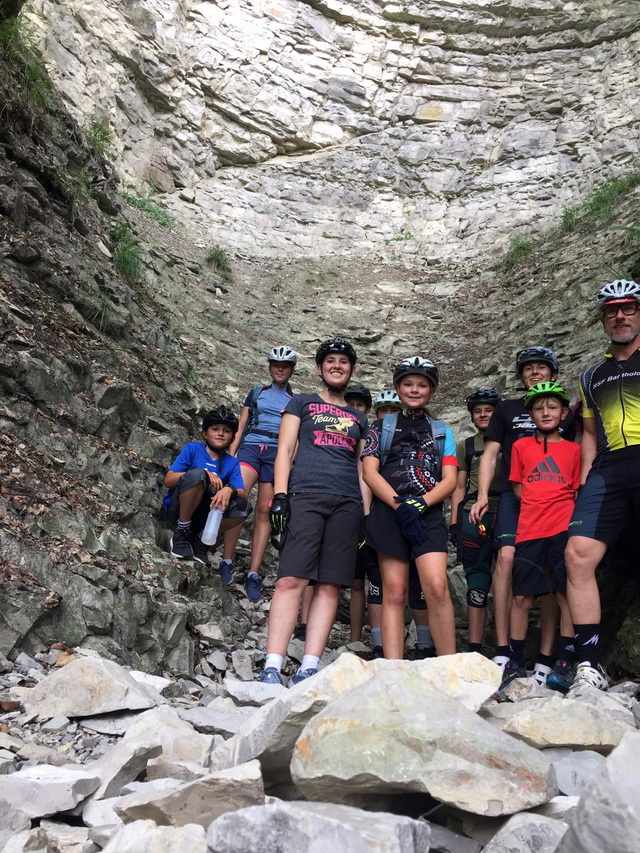 Teufelsklinge. Dort wurden die Bikes abgelegt und ein kurzer Fußmarsch zum Teufelsklingenbröller unternommen. Auch wenn kein