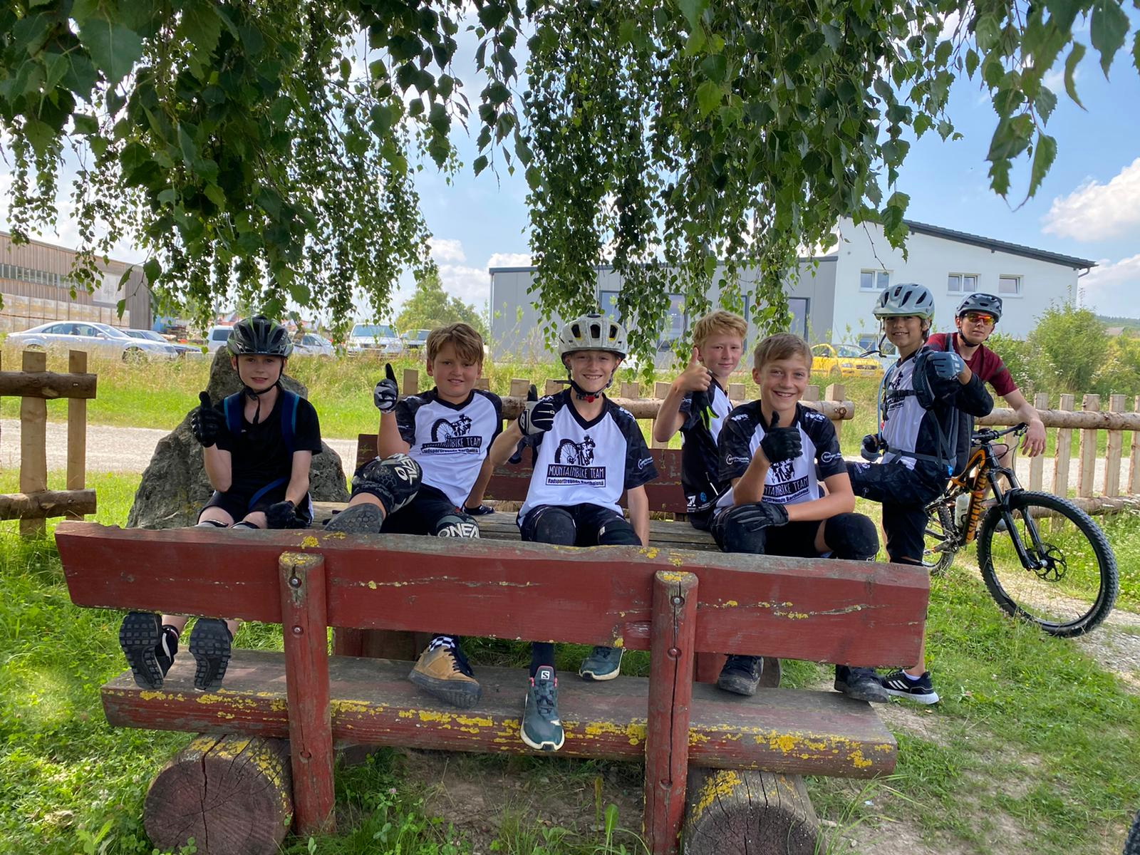 Die kleinen radelten Richtung Stock und befuhren den Trail zur Teufelsklinge. Mit den größeren ging es über den Thunderstruck Trail Richtung Rosenstein. Dann hinab über die Bärenhalde zur Heubacher Stellung. Auf dem dortigen Pumptrack wurden dann einige Runden gedreht. War toll anzuschauen, wie alle gemeinsam auf dem Pumptrack ihre Runden gedreht haben und jeder auf den anderen Rücksicht genommen hat. Dann kam der nicht so angenehme Teil der Tour, der Anstieg wieder hinauf in Richtung Lauterburg. Aber auch dieser wurde von allen gemeistert.