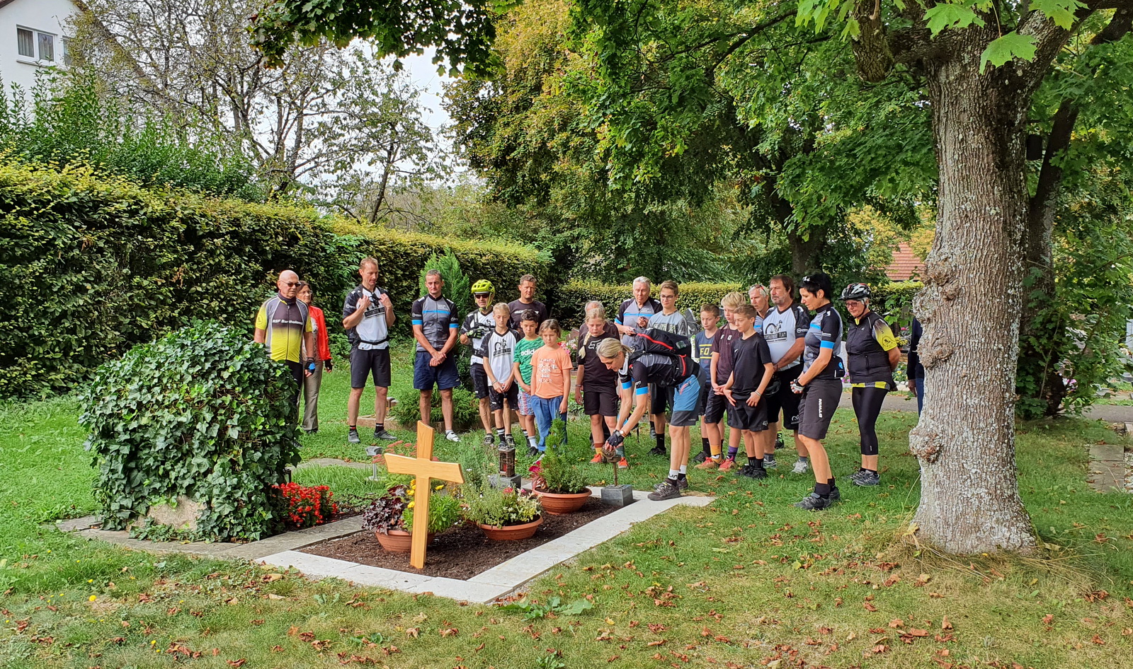 Friedhof am Grab unseres Radler-Kollegen Pius.