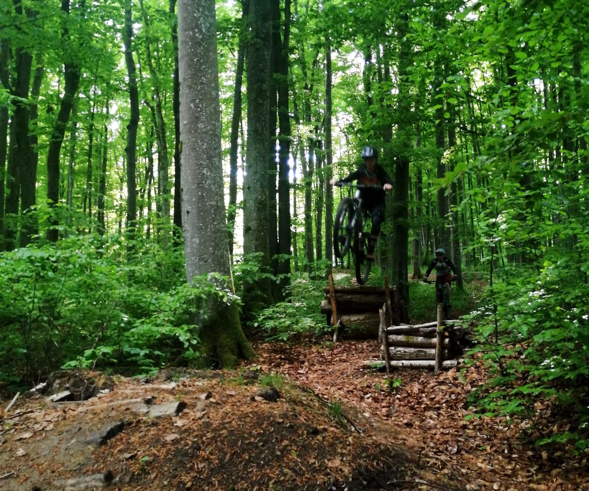 beiden Trails am Wirtsberg, während die zweite Gruppe eine Tour über die Teufelsklinge, grüne Hölle und den Homerun zurück nach