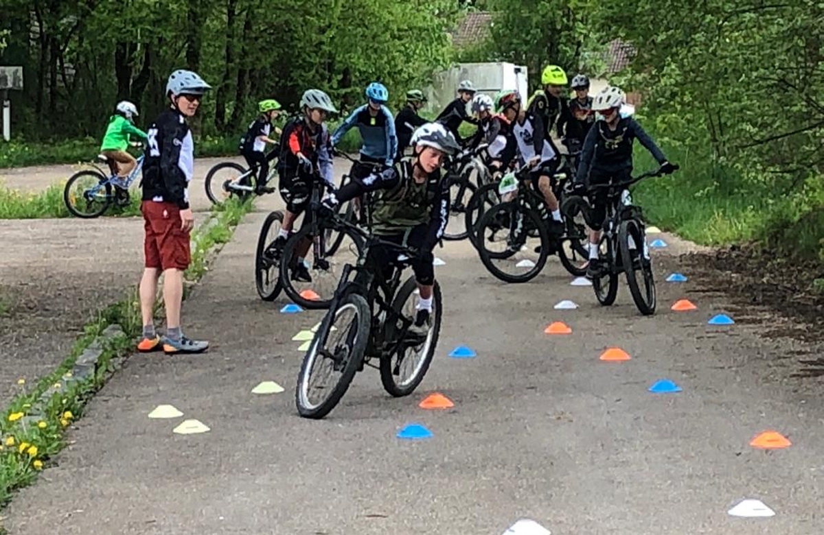 Bei besten Bedingungen startete das MTB-Training für alle Altersgruppen mit einem Techniktraining am Bike-Park.