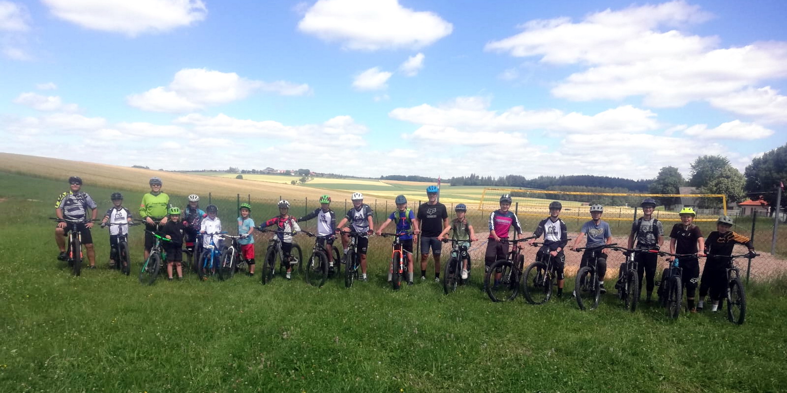 Schnell wurden Gruppen gebildet und los ging es. Kai radelte mit einer großen Gruppe zum Wirtsberg und machte dort Fahrtechnik-Training.