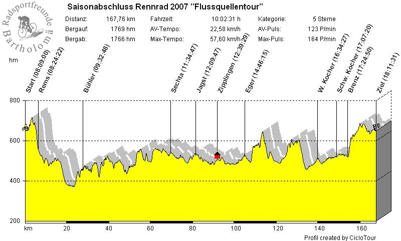 Start: Sonntag, 23.09.2007, um 8.00 Uhr bei Siggi (168 km, 1.770-2.030 Höhenmeter je nach Messung):
