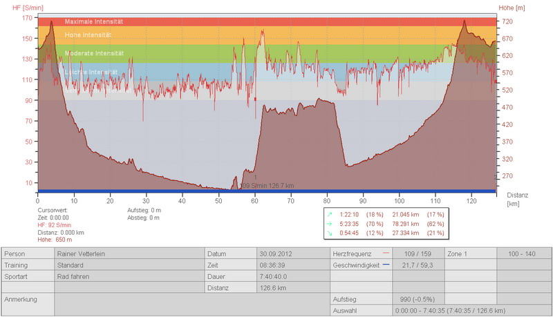 Start: Sonntag, 30.09.2012, 8:30 Uhr am Bänkle (127 km, 990 Hm):