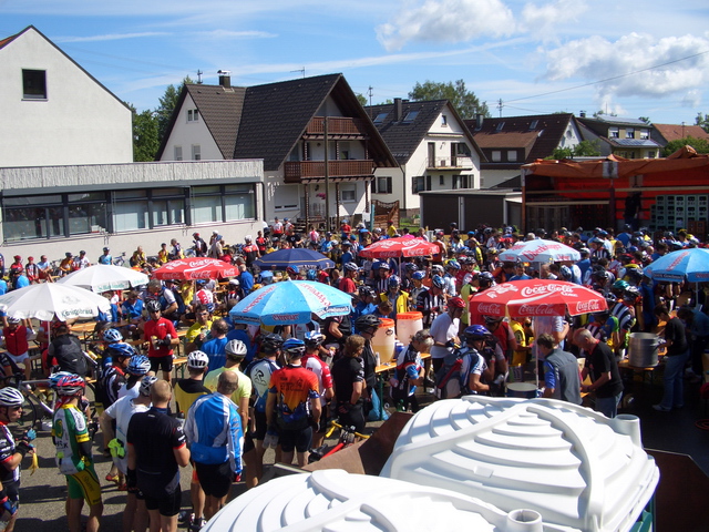 an der Verpflegungsstelle in Bartholomä eintrafen. Wieder einmal bereiteten viele Fans der Radsportfreunde allen Startern einen tollen Empfang in