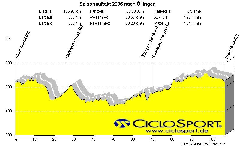 Start: Sonntag, 02.04.2006, 9:00 Uhr bei Siggi (108 km 840 Höhenmeter):