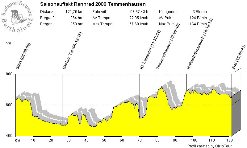Start: Sonntag, 13.04.2008, 8:00 Uhr bei Siggi (130 km bzw. 122 km):