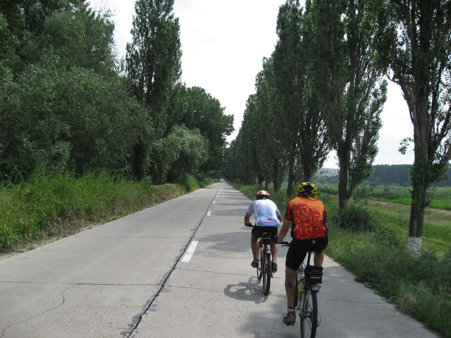 Wieder 36 Grad und Gegenwind, aber klasse Straßen. Um 14 Uhr Kaffeepause unter Pappeln. Schnell sind wir in Călăraşi.